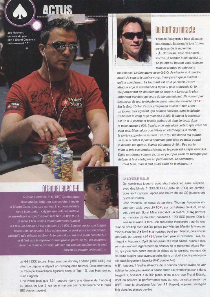 Algarve Amneville Arena Poker Camp A toute blind Barriere Poker Tour Budapest Cannes ChiliPoker Coaching Poker Copenhage coverage Deauville Ecole Française de Poker Enghein EPT FCOOP Golden Sands High Stakes Interviews Le Parisien Live Poker Londres Monaco My Poker Squad Namur Nicolas Dervaux Partouche Poker Tour Poker Poker52 Poker Actu Poker Coach Poker Interview Poker Leaders Poker Magazine Prague Team Poker Cup Tournois Unibet Unibet Open Valence Varsovie Video Wagram World Heads Up WPT